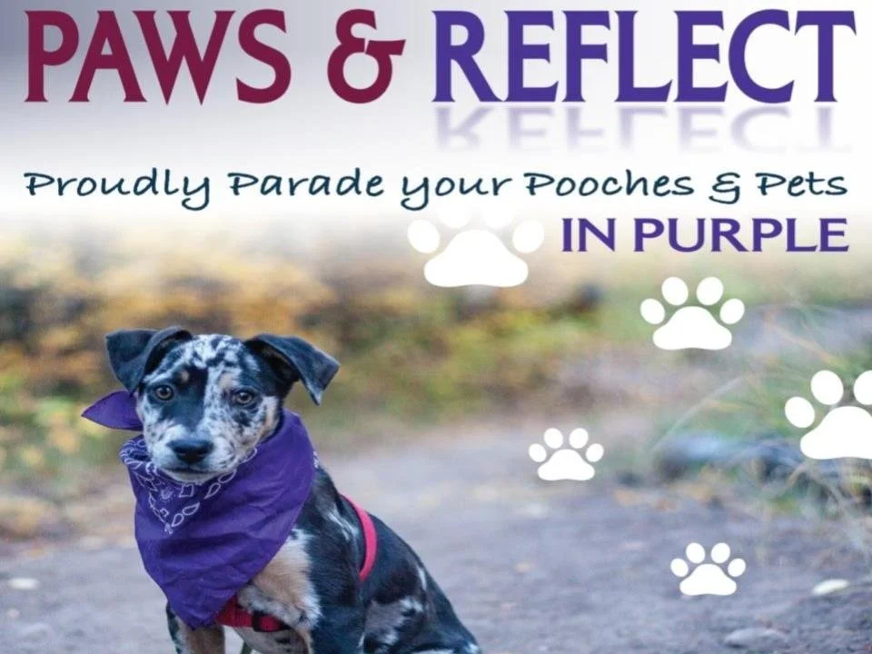 Survivors marched their pets adorned in purple across downtown for Domestic Violence Awareness Month